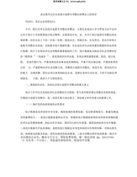【七哥公文】2025年:【七哥公文】县纪委书记在全县统计造假专项整治部署会上的讲话+更多免费公文+VX:QiGeGongWen2024+更多免费公文+VX:QiGeGongWen2024
