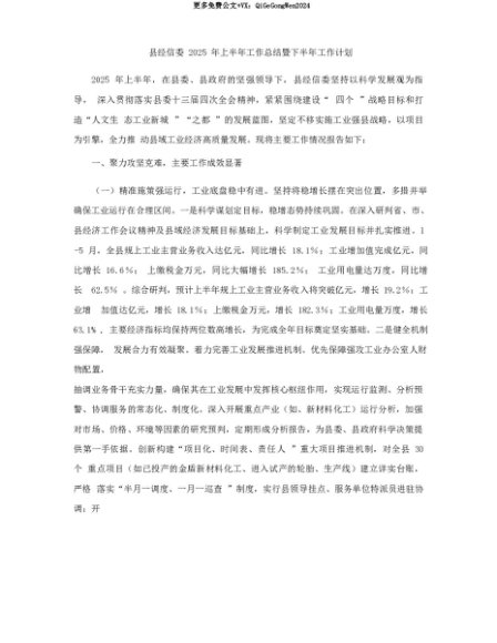【七哥公文】2025年:【七哥公文】县经信委2025年上半年工作总结暨下半年工作计划+更多免费公文+VX:QiGeGongWen2024+更多免费公文+VX:QiGeGongWen2024