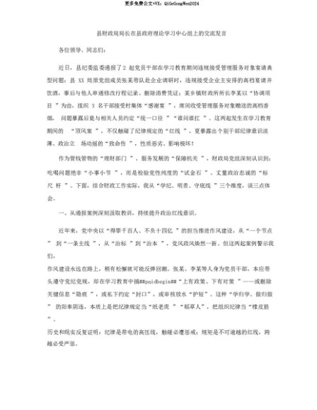 【七哥公文】2025年:【七哥公文】县财政局局长在县政府理论学习中心组上的交流发言+更多免费公文+VX:QiGeGongWen2024+更多免费公文+VX:QiGeGongWen2024