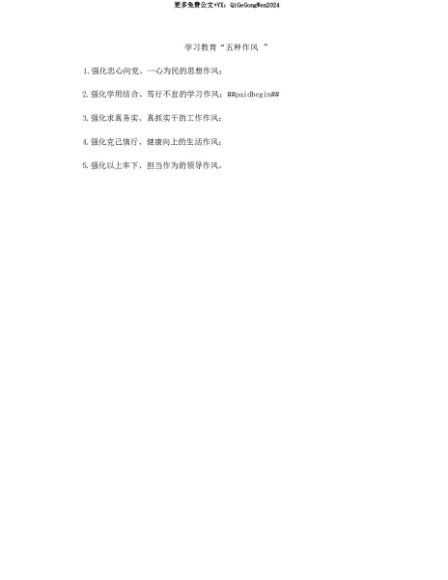 【七哥公文】2025年:【七哥公文】学习教育“五种作风”+更多免费公文+VX:QiGeGongWen2024+更多免费公文+VX:QiGeGongWen2024
