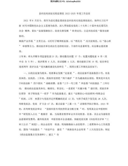 【七哥公文】2025年:【七哥公文】县科技局派驻纪检监察组2022-2025年度工作总结+更多免费公文+VX:QiGeGongWen2024+更多免费公文+VX:QiGeGongWen2024