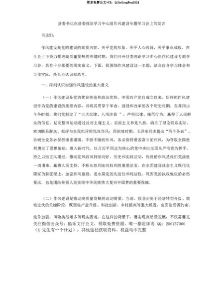 【七哥公文】2025年:【七哥公文】县委书记在县委理论学习中心组作风建设专题学习会上的发言+更多免费公文+VX:QiGeGongWen2024+更多免费公文+VX:QiGeGongWen2024