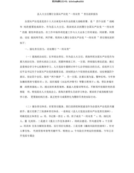 【七哥公文】2025年:【七哥公文】县人大主任履行全面从严治X“一岗双责”责任述职报告+更多免费公文+VX:QiGeGongWen2024+更多免费公文+VX:QiGeGongWen2024