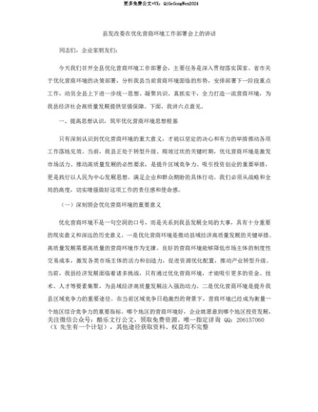 【七哥公文】2025年:【七哥公文】县发改委在优化营商环境工作部署会上的讲话+更多免费公文+VX:QiGeGongWen2024+更多免费公文+VX:QiGeGongWen2024