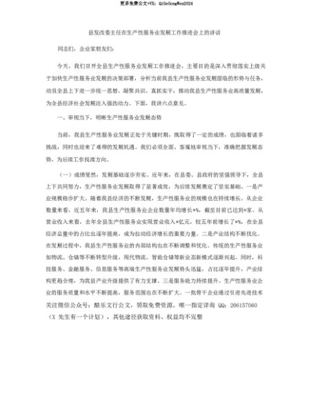 【七哥公文】2025年:【七哥公文】县发改委主任在生产性服务业发展工作推进会上的讲话+更多免费公文+VX:QiGeGongWen2024+更多免费公文+VX:QiGeGongWen2024