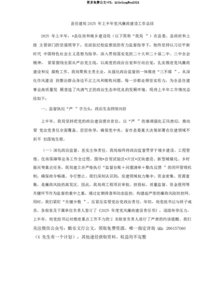 【七哥公文】2025年:【七哥公文】县住建局2025年上半年X风廉政建设工作总结+更多免费公文+VX:QiGeGongWen2024+更多免费公文+VX:QiGeGongWen2024
