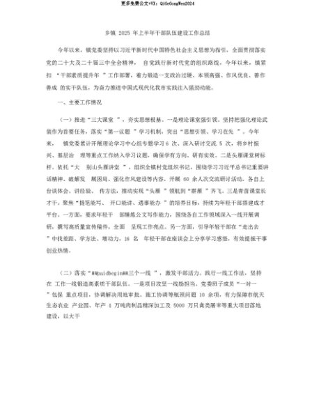 【七哥公文】2025年:【七哥公文】乡镇2025年上半年干部队伍建设工作总结+更多免费公文+VX:QiGeGongWen2024+更多免费公文+VX:QiGeGongWen2024