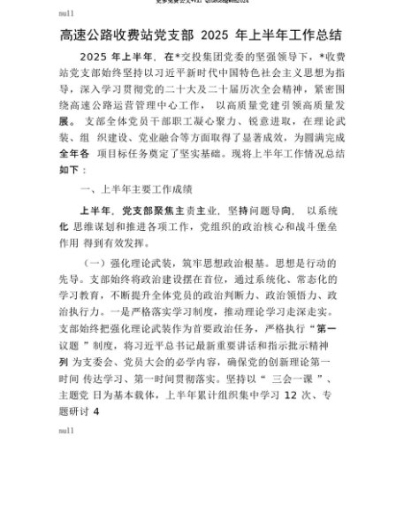 【七哥公文】2025年:【七哥公文】高速公路收费站X支部2025年上半年工作总结+更多免费公文+VX:QiGeGongWen2024+更多免费公文+VX:QiGeGongWen2024