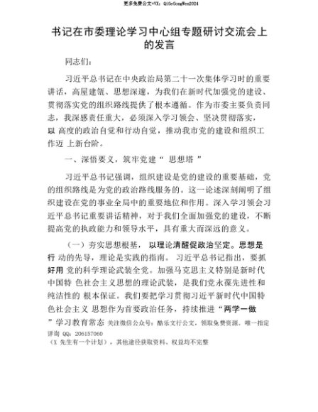 【七哥公文】2025年:【七哥公文】书记在市委理论学习中心组专题研讨交流会上的发言+更多免费公文+VX:QiGeGongWen2024+更多免费公文+VX:QiGeGongWen2024