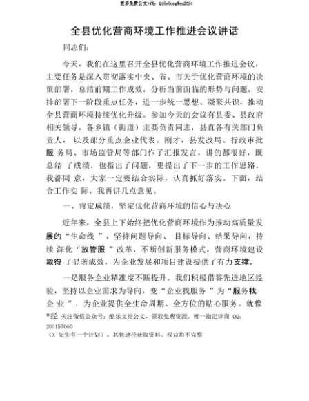 【七哥公文】2025年:【七哥公文】全县优化营商环境工作推进会议讲话+更多免费公文+VX:QiGeGongWen2024+更多免费公文+VX:QiGeGongWen2024