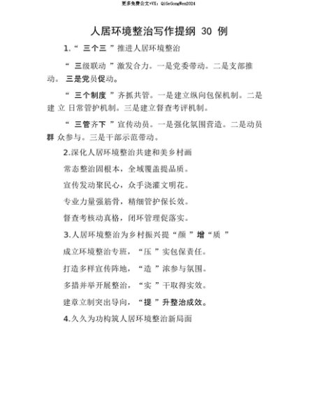【七哥公文】2025年:【七哥公文】人居环境整治写作提纲30例+更多免费公文+VX:QiGeGongWen2024+更多免费公文+VX:QiGeGongWen2024