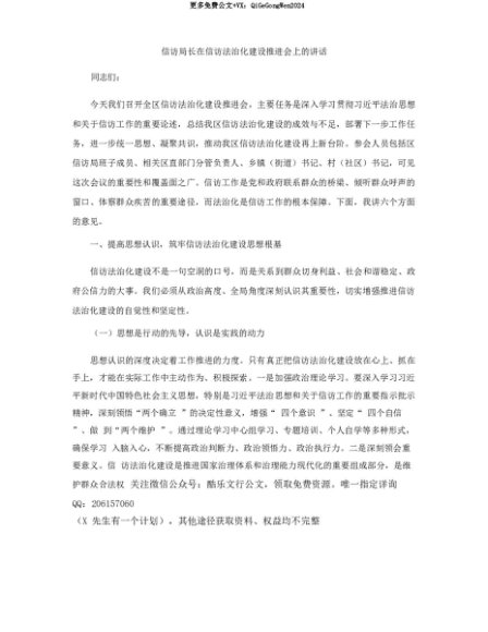 【七哥公文】2025年:【七哥公文】信访局长在信访法治化建设推进会上的讲话+更多免费公文+VX:QiGeGongWen2024+更多免费公文+VX:QiGeGongWen2024