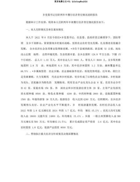 【七哥公文】2025年:【七哥公文】乡X委书记任职两年半履行经济责任情况述职报告+更多免费公文+VX:QiGeGongWen2024+更多免费公文+VX:QiGeGongWen2024