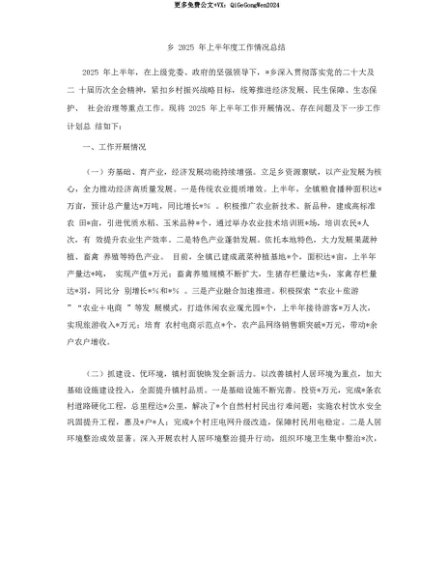 【七哥公文】2025年:【七哥公文】乡2025年上半年度工作情况总结+更多免费公文+VX:QiGeGongWen2024+更多免费公文+VX:QiGeGongWen2024