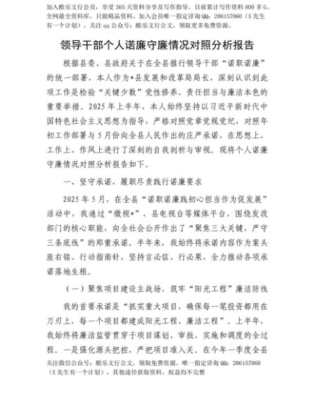 【七哥公文】2025年:【七哥公文】领导干部个人诺廉守廉情况对照分析报告+更多免费公文+VX:QiGeGongWen2024+更多免费公文+VX:QiGeGongWen2024