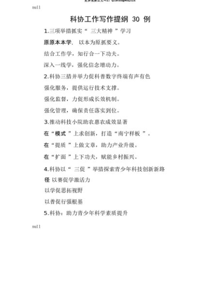 【七哥公文】2025年:【七哥公文】科协工作写作提纲30例+更多免费公文+VX:QiGeGongWen2024+更多免费公文+VX:QiGeGongWen2024
