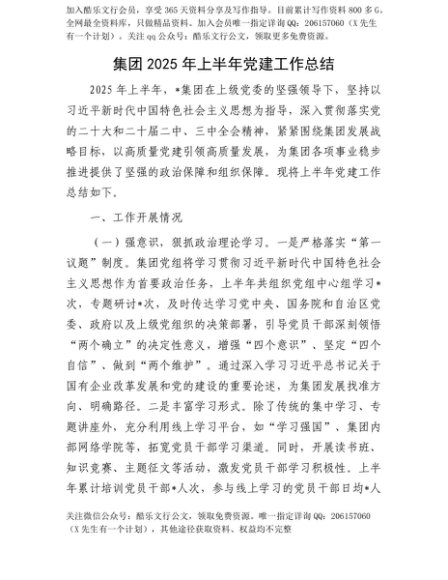 【七哥公文】2025年:【七哥公文】集团2025年上半年X建工作总结+更多免费公文+VX:QiGeGongWen2024+更多免费公文+VX:QiGeGongWen2024