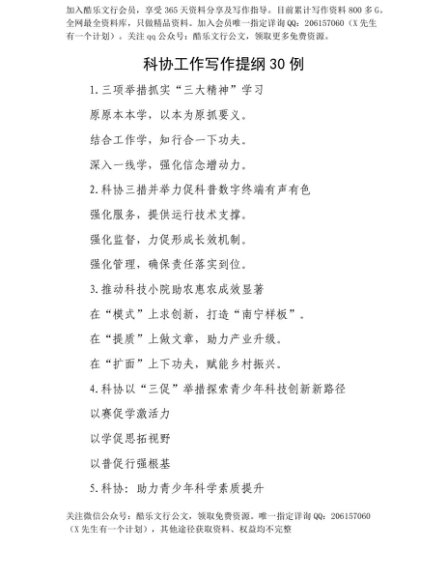 【七哥公文】2025年:【七哥公文】科协工作写作提纲30例+更多免费公文+VX:QiGeGongWen2024+更多免费公文+VX:QiGeGongWen2024