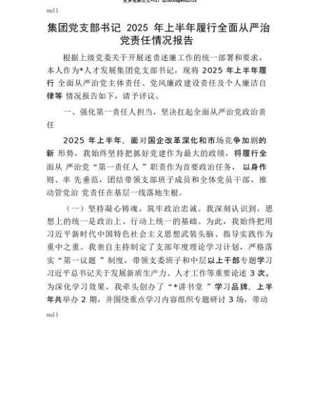 【七哥公文】2025年:【七哥公文】集团X支部书记2025年上半年履行全面从严治X责任情况报告+更多免费公文+VX:QiGeGongWen2024+更多免费公文+VX:QiGeGongWen2024