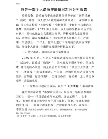 【七哥公文】2025年:【七哥公文】领导干部个人诺廉守廉情况对照分析报告+更多免费公文+VX:QiGeGongWen2024+更多免费公文+VX:QiGeGongWen2024