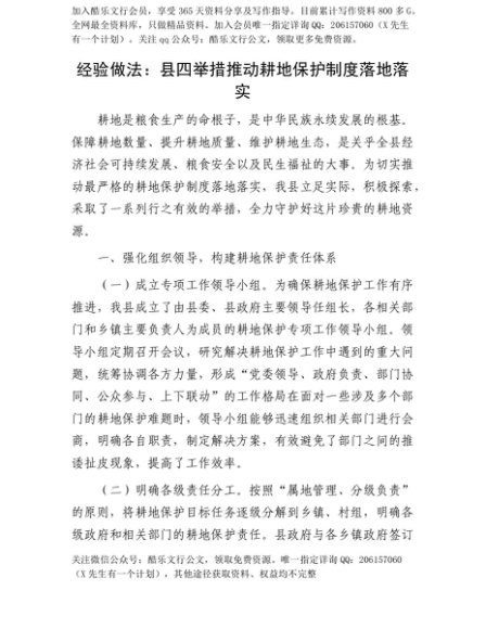 【七哥公文】2025年:【七哥公文】经验做法:县四举措推动耕地保护制度落地落实+更多免费公文+VX:QiGeGongWen2024+更多免费公文+VX:QiGeGongWen2024
