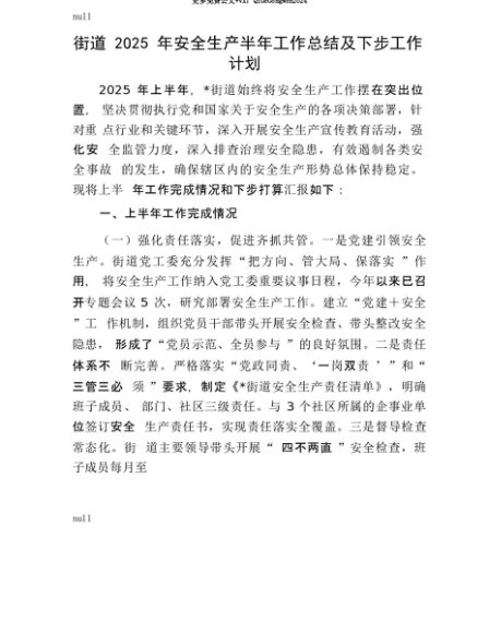 【七哥公文】2025年:【七哥公文】街道2025年安全生产半年工作总结及下步工作计划+更多免费公文+VX:QiGeGongWen2024+更多免费公文+VX:QiGeGongWen2024