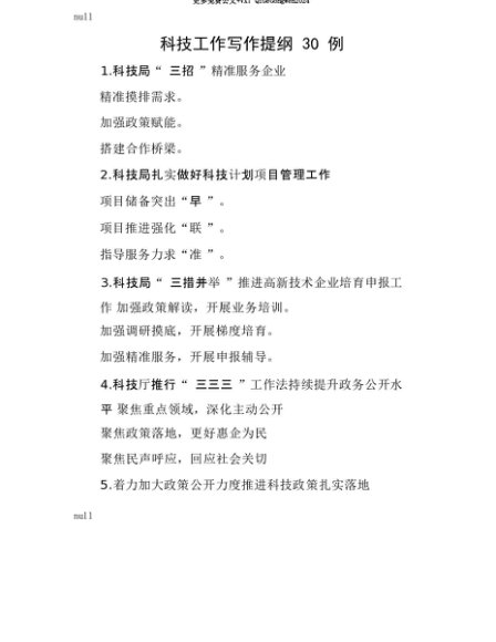 【七哥公文】2025年:【七哥公文】科技工作写作提纲30例+更多免费公文+VX:QiGeGongWen2024+更多免费公文+VX:QiGeGongWen2024