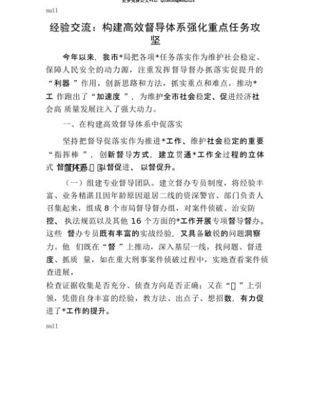 【七哥公文】2025年:【七哥公文】经验交流: 构建高效督导体系 强化重点任务攻坚+更多免费公文+VX:QiGeGongWen2024+更多免费公文+VX:QiGeGongWen2024
