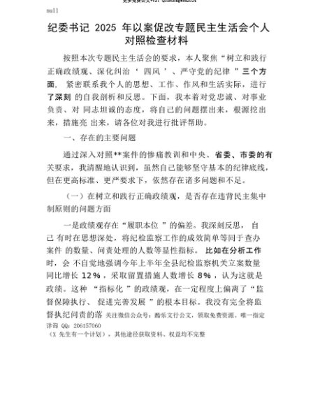 【七哥公文】2025年:【七哥公文】纪委书记2025年以案促改专题民主生活会个人对照检查材料+更多免费公文+VX:QiGeGongWen2024+更多免费公文+VX:QiGeGongWen2024