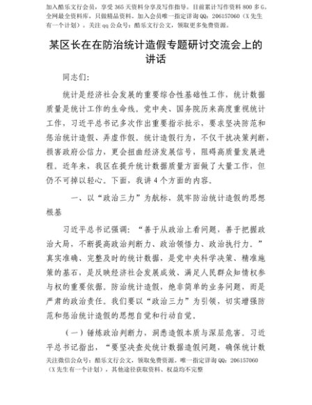 【七哥公文】2025年:【七哥公文】某区长在在防治统计造假专题研讨交流会上的讲话+更多免费公文+VX:QiGeGongWen2024+更多免费公文+VX:QiGeGongWen2024