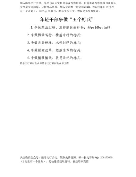 【七哥公文】2025年:【七哥公文】年轻干部争做“五个标兵”+更多免费公文+VX:QiGeGongWen2024+更多免费公文+VX:QiGeGongWen2024