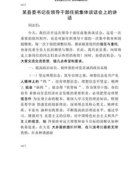 【七哥公文】2025年:【七哥公文】某县委书记在领导干部任前集体谈话会上的讲话+更多免费公文+VX:QiGeGongWen2024+更多免费公文+VX:QiGeGongWen2024
