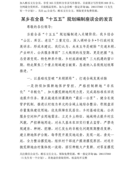 【七哥公文】2025年:【七哥公文】某乡在全县“十五五”规划编制座谈会的发言+更多免费公文+VX:QiGeGongWen2024+更多免费公文+VX:QiGeGongWen2024