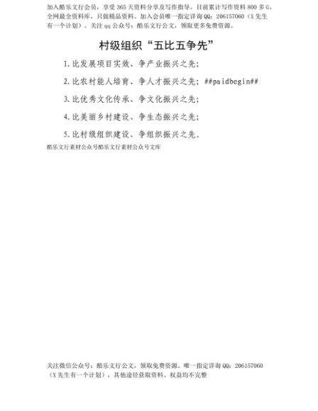 【七哥公文】2025年:【七哥公文】村级组织“五比五争先”+更多免费公文+VX:QiGeGongWen2024+更多免费公文+VX:QiGeGongWen2024