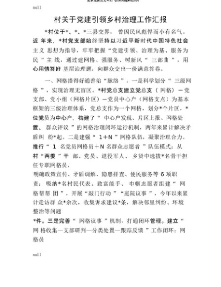 【七哥公文】2025年:【七哥公文】村关于X建引领乡村治理工作汇报+更多免费公文+VX:QiGeGongWen2024+更多免费公文+VX:QiGeGongWen2024