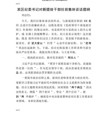 【七哥公文】2025年:【七哥公文】某区纪委书记对新提拔干部任前集体谈话提纲+更多免费公文+VX:QiGeGongWen2024+更多免费公文+VX:QiGeGongWen2024