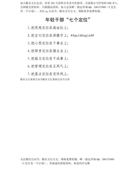 【七哥公文】2025年:【七哥公文】年轻干部“七个定位”+更多免费公文+VX:QiGeGongWen2024+更多免费公文+VX:QiGeGongWen2024