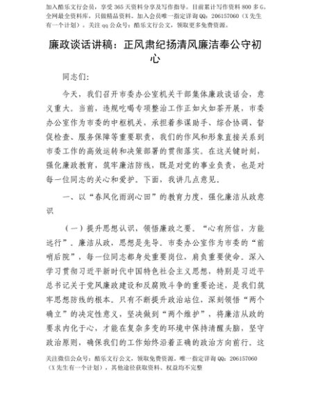 【七哥公文】2025年:【七哥公文】廉政谈话讲稿:正风肃纪扬清风 廉洁奉公守初心+更多免费公文+VX:QiGeGongWen2024+更多免费公文+VX:QiGeGongWen2024