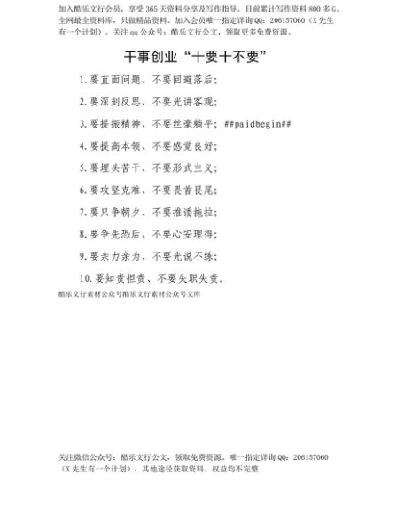 【七哥公文】2025年:【七哥公文】干事创业“十要十不要”+更多免费公文+VX:QiGeGongWen2024+更多免费公文+VX:QiGeGongWen2024