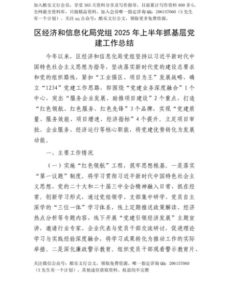 【七哥公文】2025年:【七哥公文】区经济和信息化局X组2025年上半年抓基层X建工作总结+更多免费公文+VX:QiGeGongWen2024+更多免费公文+VX:QiGeGongWen2024
