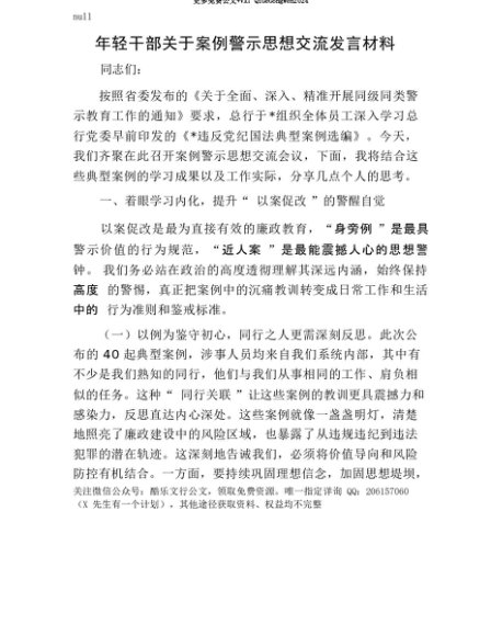 【七哥公文】2025年:【七哥公文】年轻干部关于案例警示思想交流发言材料+更多免费公文+VX:QiGeGongWen2024+更多免费公文+VX:QiGeGongWen2024
