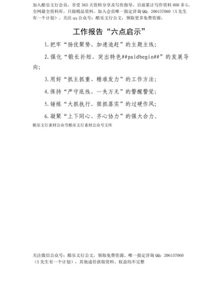 【七哥公文】2025年:【七哥公文】工作报告“六点启示”+更多免费公文+VX:QiGeGongWen2024+更多免费公文+VX:QiGeGongWen2024