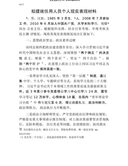 【七哥公文】2025年:【七哥公文】拟提拔任用人员个人现实表现材料+更多免费公文+VX:QiGeGongWen2024+更多免费公文+VX:QiGeGongWen2024