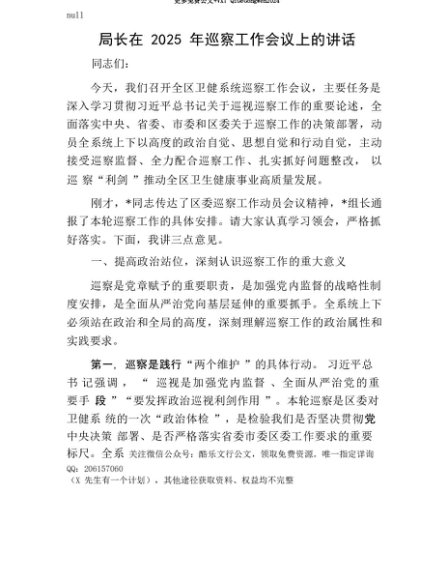 【七哥公文】2025年:【七哥公文】局长在2025年巡察工作会议上的讲话+更多免费公文+VX:QiGeGongWen2024+更多免费公文+VX:QiGeGongWen2024