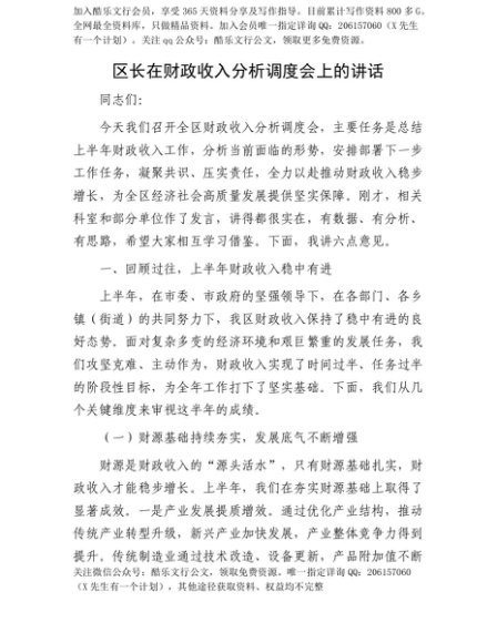 【七哥公文】2025年:【七哥公文】区长在财政收入分析调度会上的讲话+更多免费公文+VX:QiGeGongWen2024+更多免费公文+VX:QiGeGongWen2024