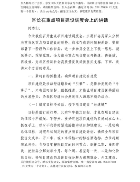【七哥公文】2025年:【七哥公文】区长在重点项目建设调度会上的讲话+更多免费公文+VX:QiGeGongWen2024+更多免费公文+VX:QiGeGongWen2024