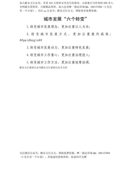 【七哥公文】2025年:【七哥公文】城市发展“六个转变”+更多免费公文+VX:QiGeGongWen2024+更多免费公文+VX:QiGeGongWen2024
