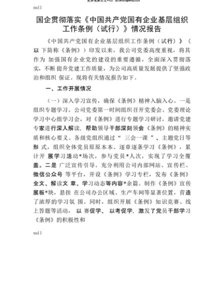 【七哥公文】2025年:【七哥公文】国企贯彻落实《中国共产X国有企业基层组织工作条例(试行)》情况报告+更多免费公文+VX:QiGeGongWen2024+更多免费公文+VX:QiGeGongWen2024