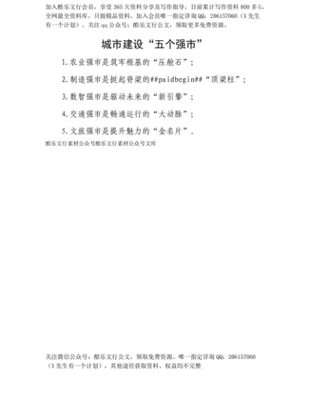 【七哥公文】2025年:【七哥公文】城市建设“五个强市”+更多免费公文+VX:QiGeGongWen2024+更多免费公文+VX:QiGeGongWen2024