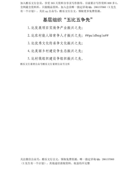 【七哥公文】2025年:【七哥公文】基层组织“五比五争先”+更多免费公文+VX:QiGeGongWen2024+更多免费公文+VX:QiGeGongWen2024